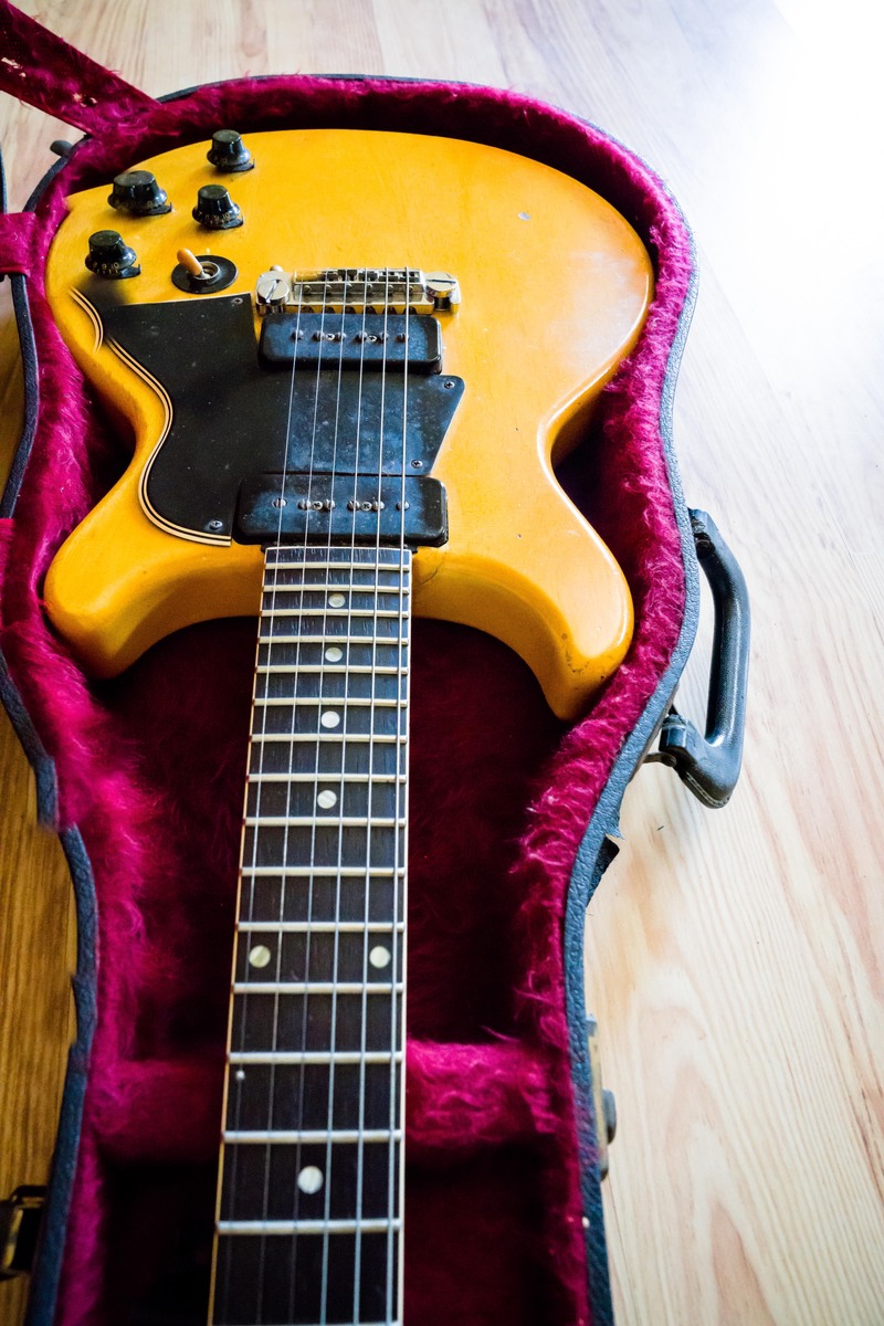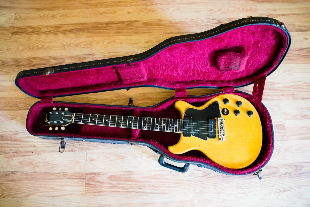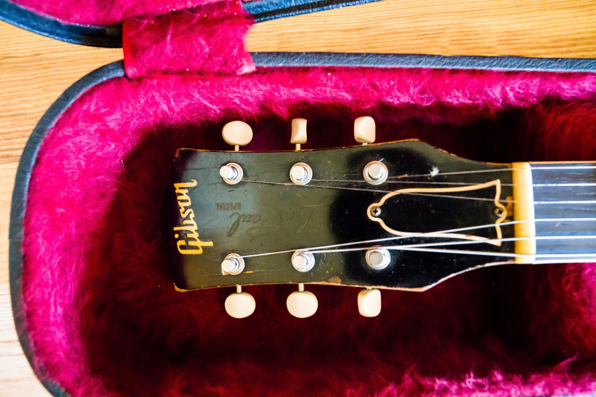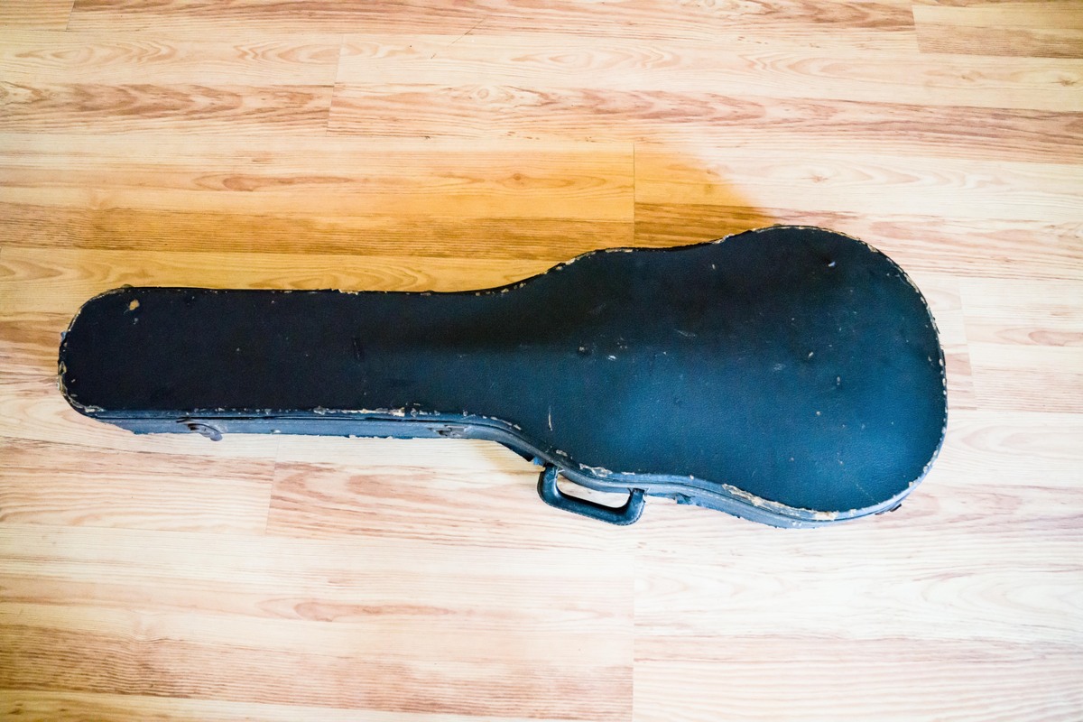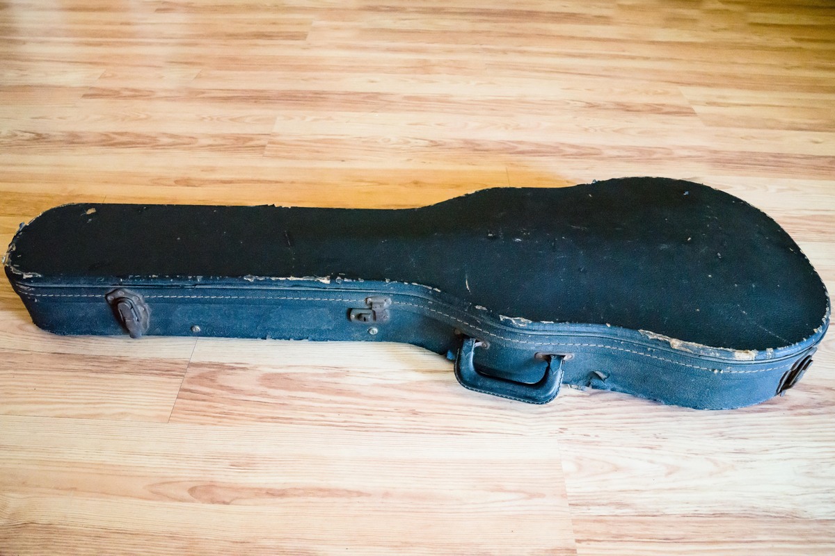Case exterior has obvious wear, case interior clean and intact. Several minor dings on front and back. Intonation good and plays cleanly on all frets. Switch and knobs all clean and functional. Tuners clean and functional.
